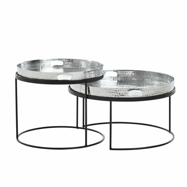 2er-Set Beistelltische – Silber-schwarz – Rund
