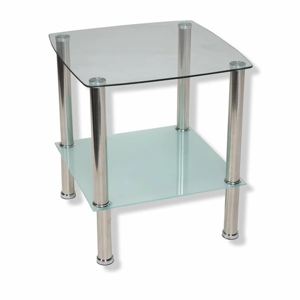Praktischer Beistelltisch aus Glas und Edelstahl