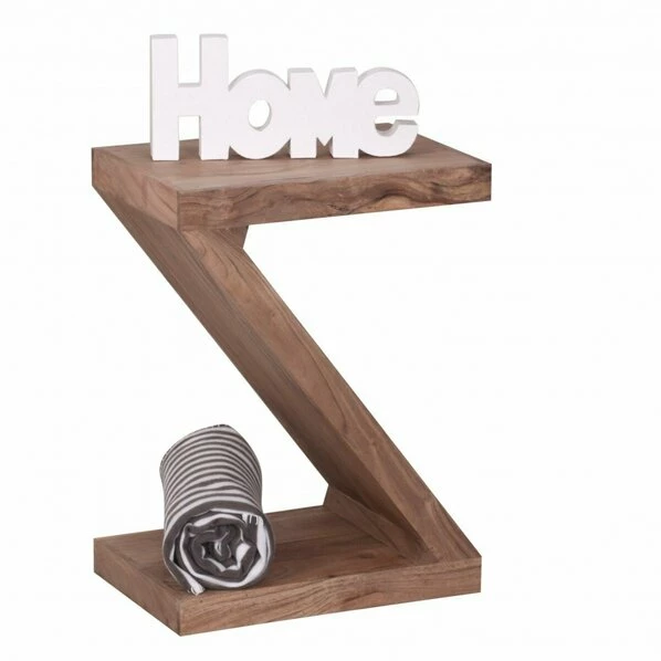 Eine extravagante Z-Form hat dieser Beistelltisch. Der Tisch aus massivem Akazienholz ist klar lackiert und weist die natürlichen Maserungen des Holzes auf, welche für einen einzigartigen Chrakter sorgen. Hierdurch ist jedes der handgefertigten Möbelstücke ein Unikat.