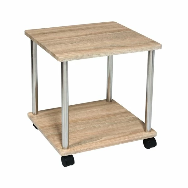 Der Beistelltisch auf praktischen Rollen lässt ganz bequem an die richtige Stelle schieben und bietet zwei Ablageflächen