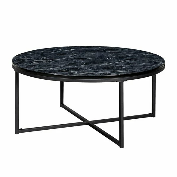 Dieser runde Couchtisch ist eine stilvolle und elegante Ergänzung für dein Zuhause. Der Tisch steht auf einem 4-Fuß sandgestrahlten Gestell aus Stahl. Dadurch wird eine hohe Robustheit und Langlebigkeit sichergestellt.