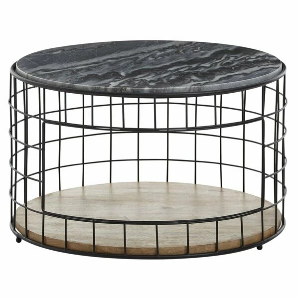 Couchtisch – Schwarz – Marmor – Korbgestell – 60,5 Cm