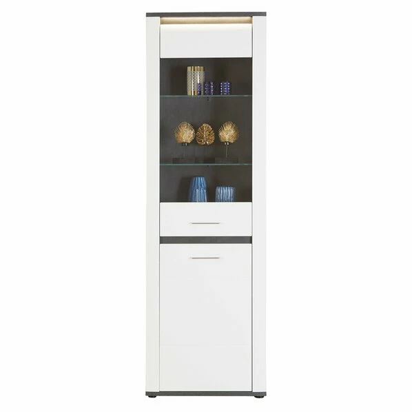 Luca Bessoni Standvitrine ALASSIO – Weiß Hochglanz – Matera Dunkel – 62 Cm